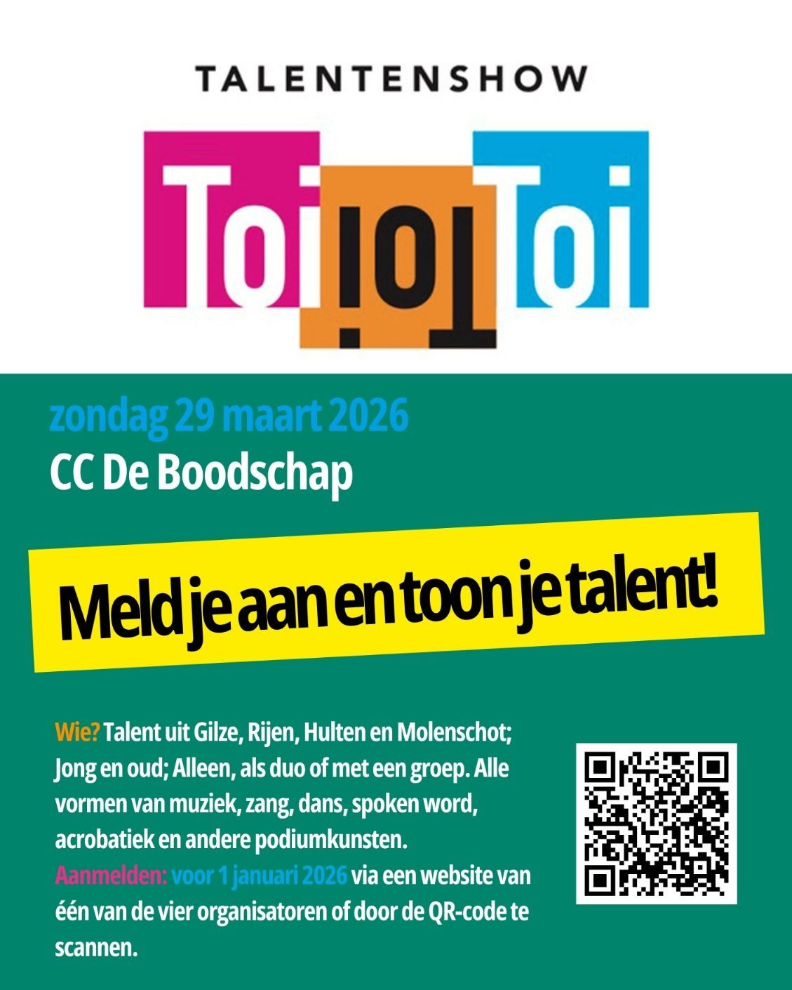 De jaarlijkse talentenshow in onze gemeente komt er weer aan. Meld je nu aan en laat jouw talent aan heel de gemeente zien!