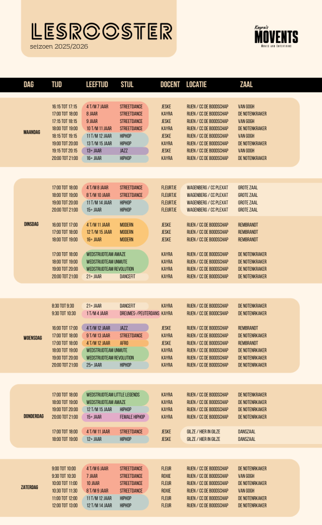 Bekijk ons volledige rooster hieronder. Een proefles volgen? Dat kan!