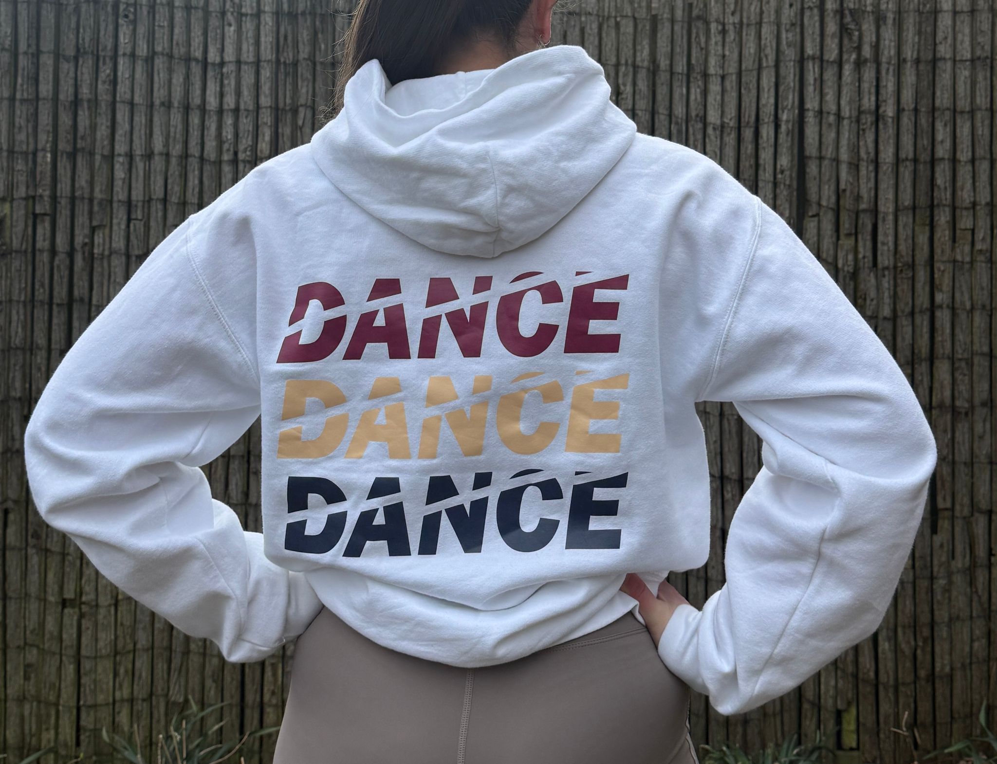Hoodie met rechts op de borst een klein logo en op de rug groot ‘Dance Dance Dance’